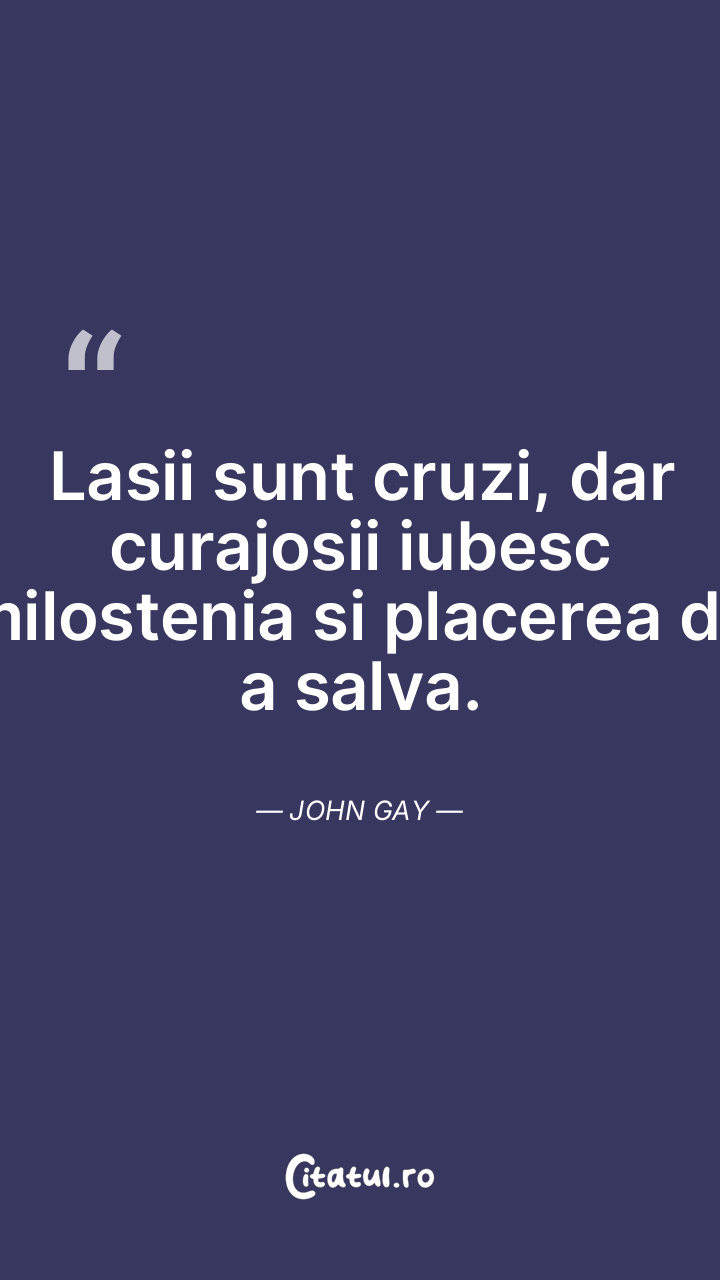 Lasii sunt cruzi, dar curajosii iubesc milostenia si placerea de a salva. John Gay