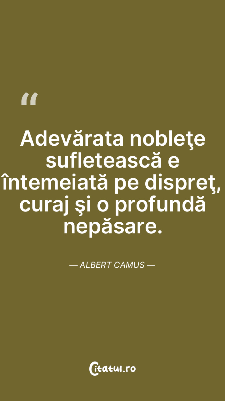Adevărata nobleţe sufletească e întemeiată pe dispreţ, curaj şi o profundă nepăsare. Albert Camus