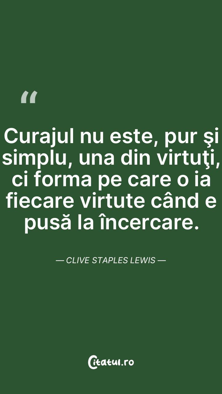 Curajul nu este, pur şi simplu, una din virtuţi, ci forma pe care o ia fiecare virtute când e pusă la încercare. Clive Staples Lewis