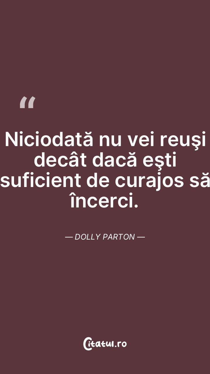 Niciodată nu vei reuşi decât dacă eşti suficient de curajos să încerci. Dolly Parton
