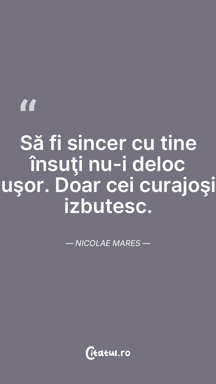 Să fi sincer cu tine însuţi nu-i deloc uşor. Doar cei curajoşi izbutesc. Nicolae Mares