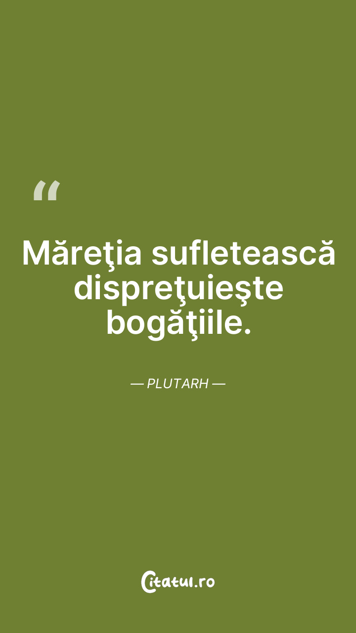 Măreţia sufletească dispreţuieşte bogăţiile. Plutarh