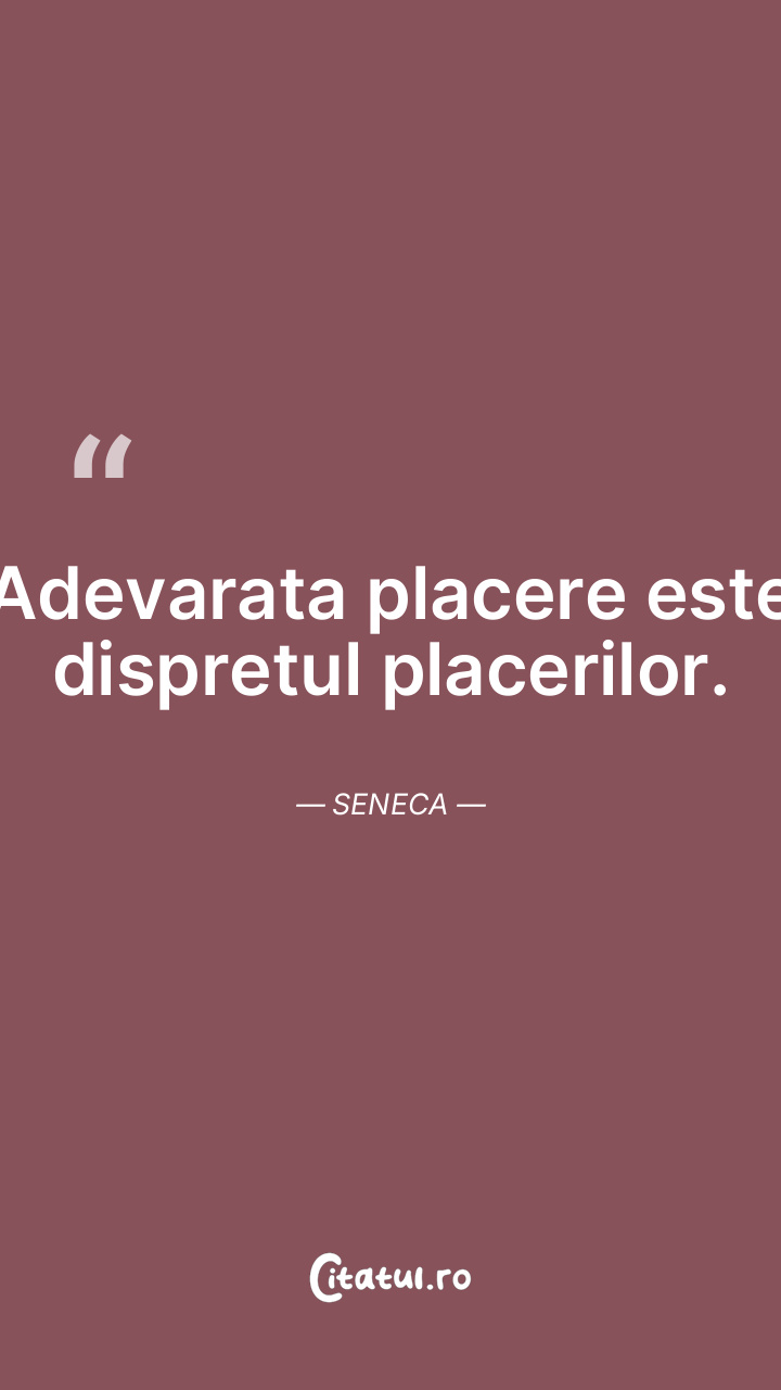 Adevarata placere este dispretul placerilor. Senec...