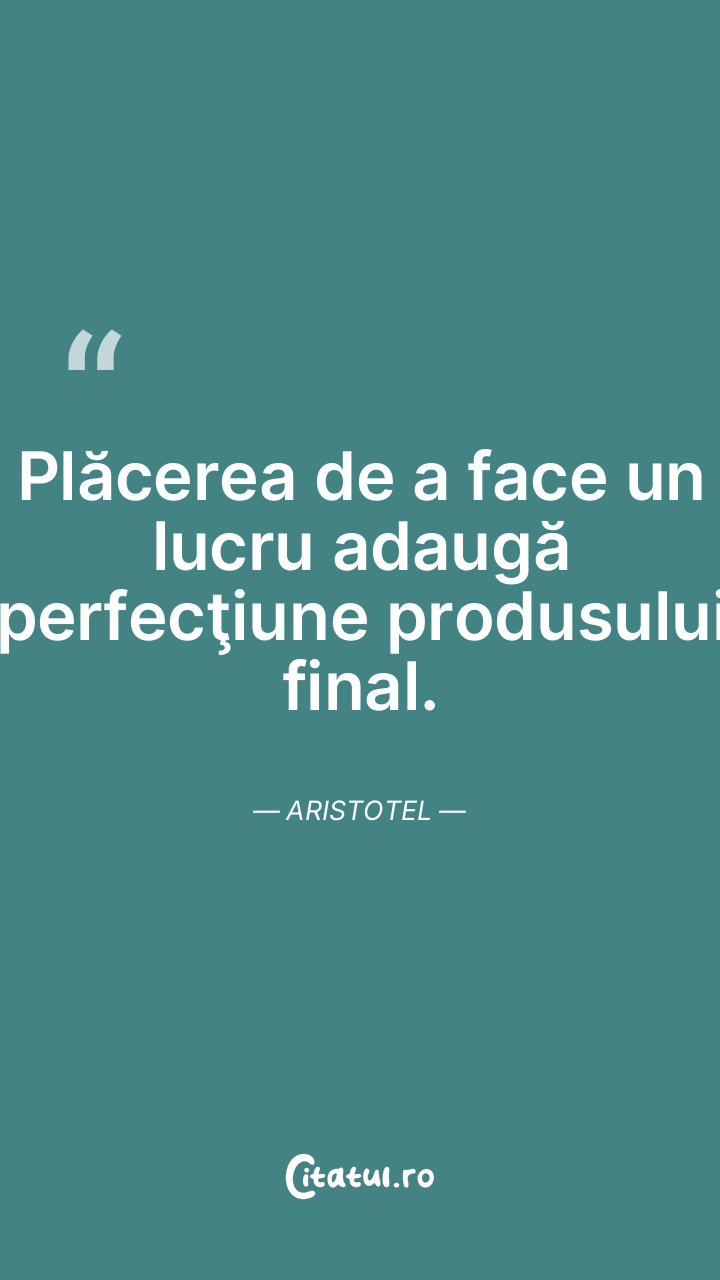 Plăcerea de a face un lucru adaugă perfecţiune produsului final. Aristotel