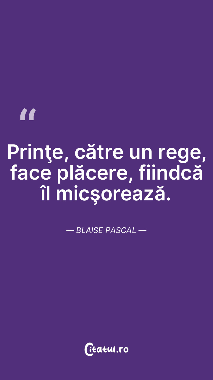 Prinţe, către un rege, face plăcere, fiindcă îl micşorează. Blaise Pascal
