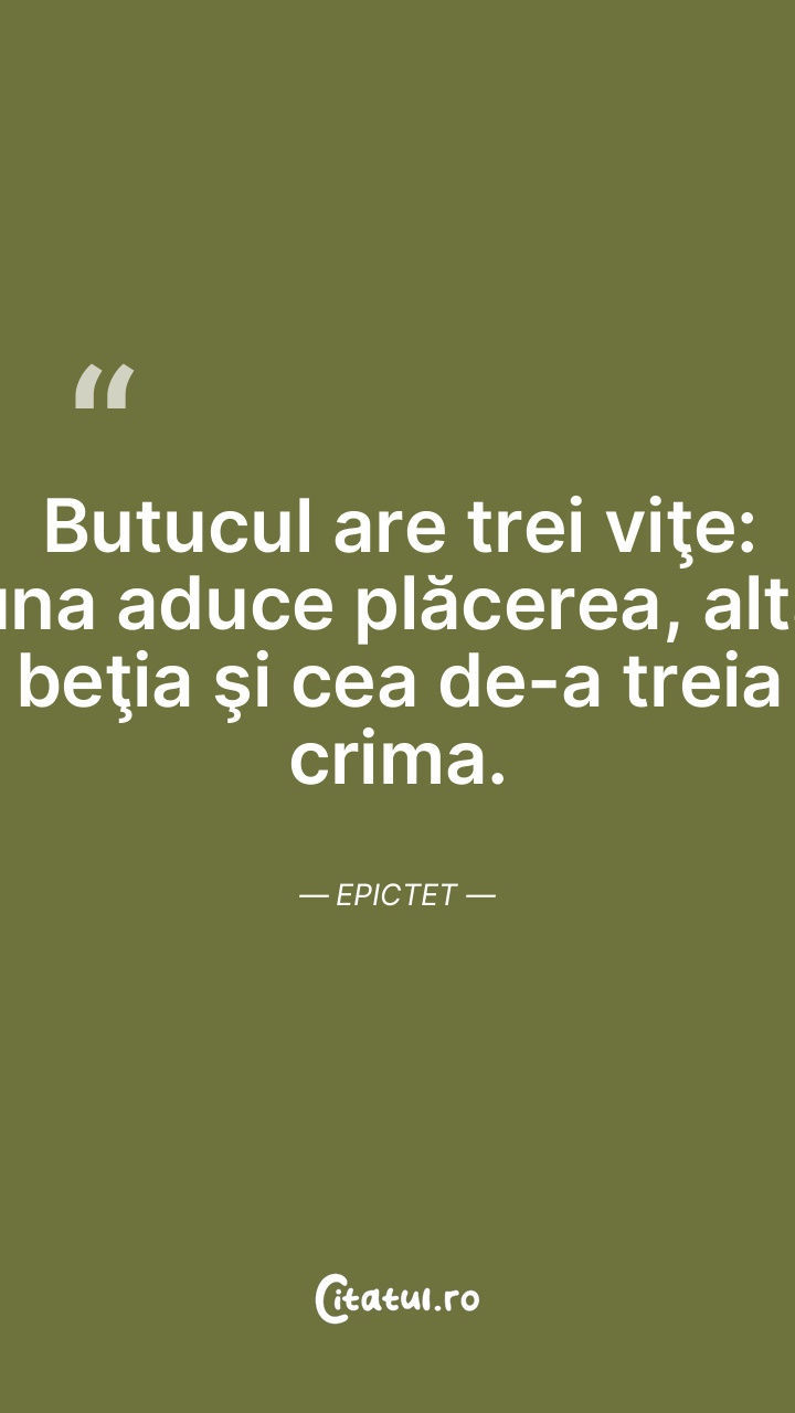 Butucul are trei viţe: una aduce plăcerea, alta beţia şi cea de-a treia crima. Epictet