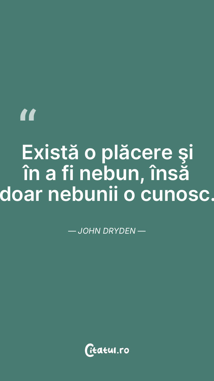 Există o plăcere şi în a fi nebun, însă doar nebunii o cunosc. John Dryden