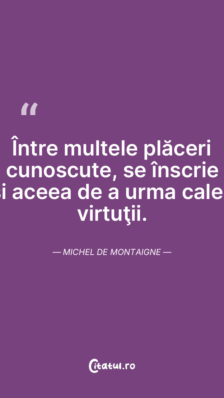 Între multele plăceri cunoscute, se înscrie şi aceea de a urma calea virtuţii. Michel de Montaigne