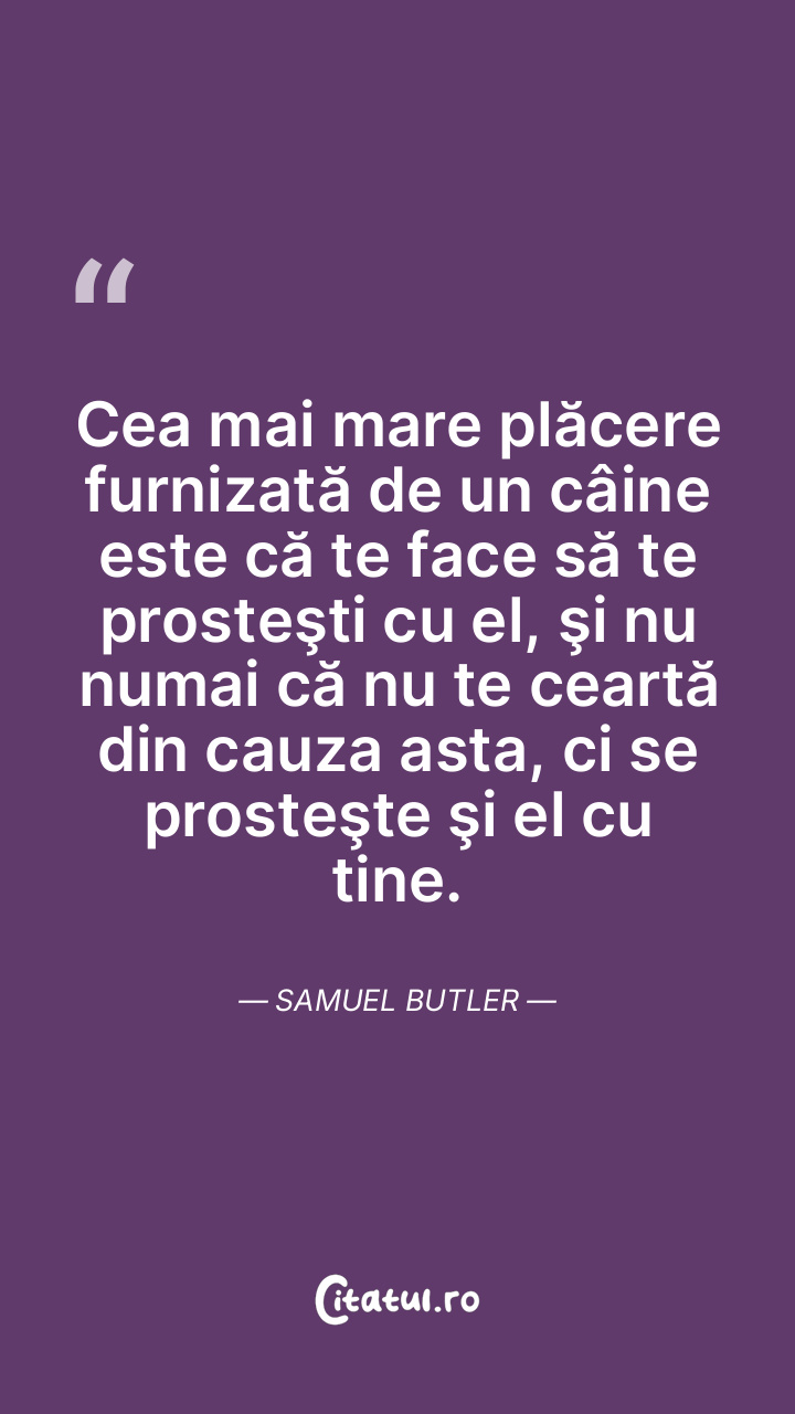 Cea mai mare plăcere furnizată de un câine este că te face să te prosteşti cu el, şi nu numai că nu te ceartă din cauza asta, ci se prosteşte şi el cu tine. Samuel Butler