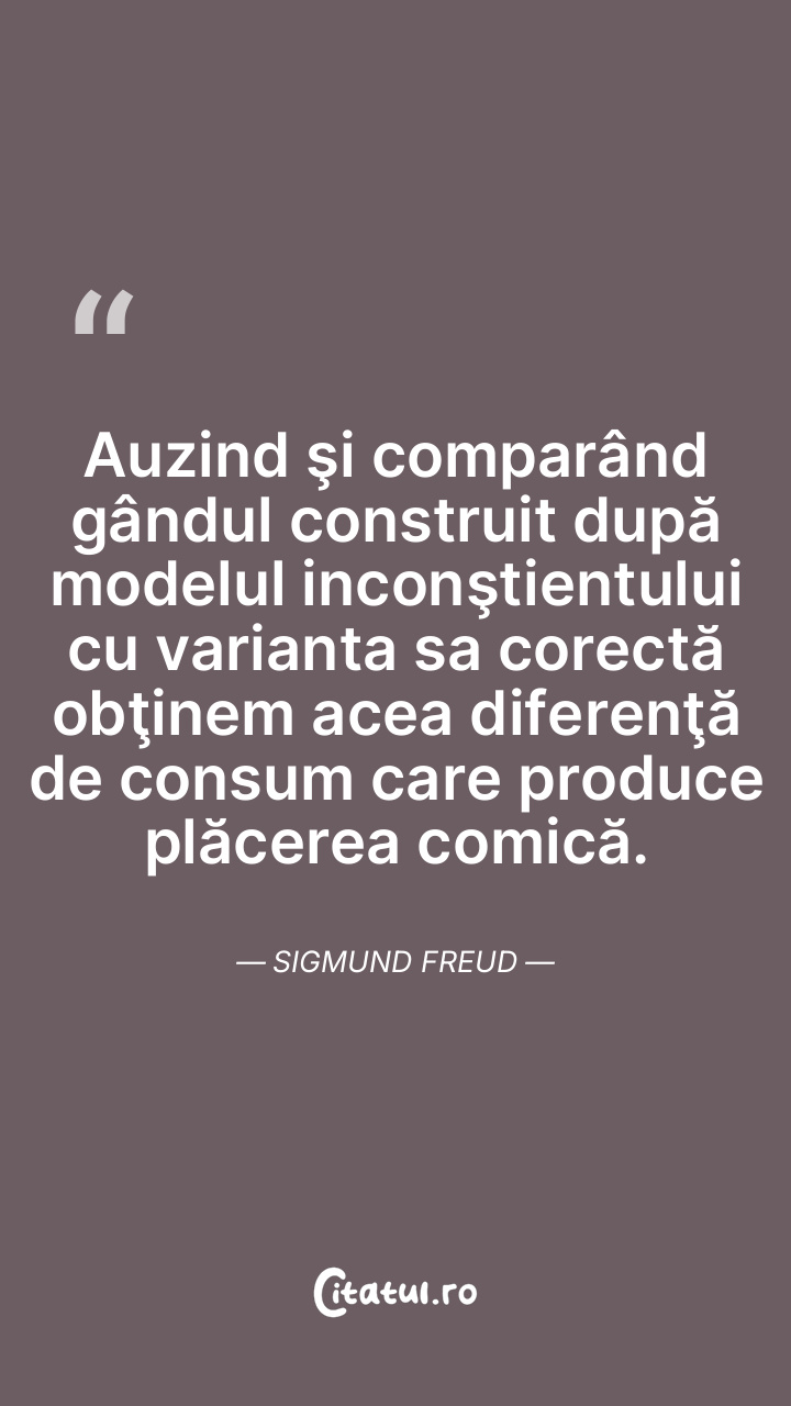 Auzind şi comparând gândul construit după modelul inconştientului cu varianta sa corectă obţinem acea diferenţă de consum care produce plăcerea comică. Sigmund Freud