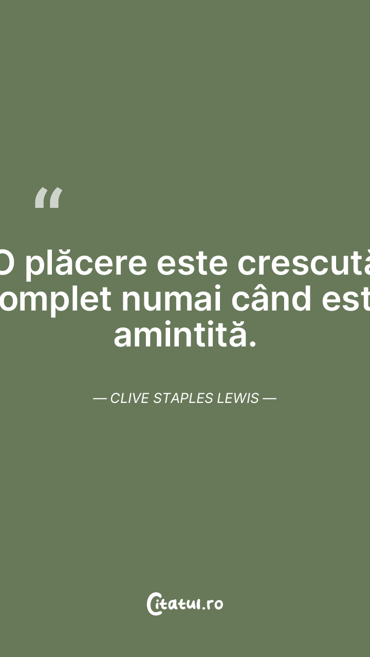 O plăcere este crescută complet numai când este amintită. Clive Staples Lewis