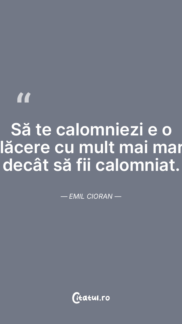 Să te calomniezi e o plăcere cu mult mai mare decât să fii calomniat. Emil Cioran