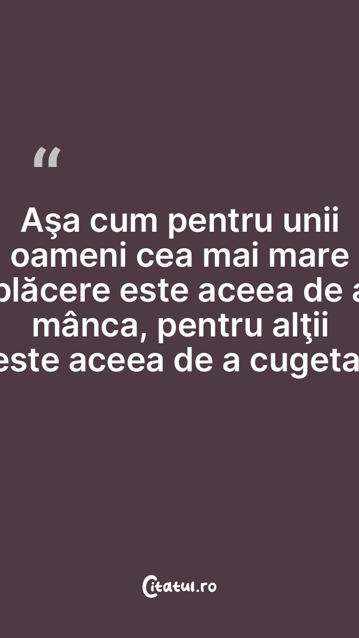 Aşa cum pentru unii oameni cea mai mare plăcere este aceea de a mânca, pentru alţii este aceea de a cugeta.