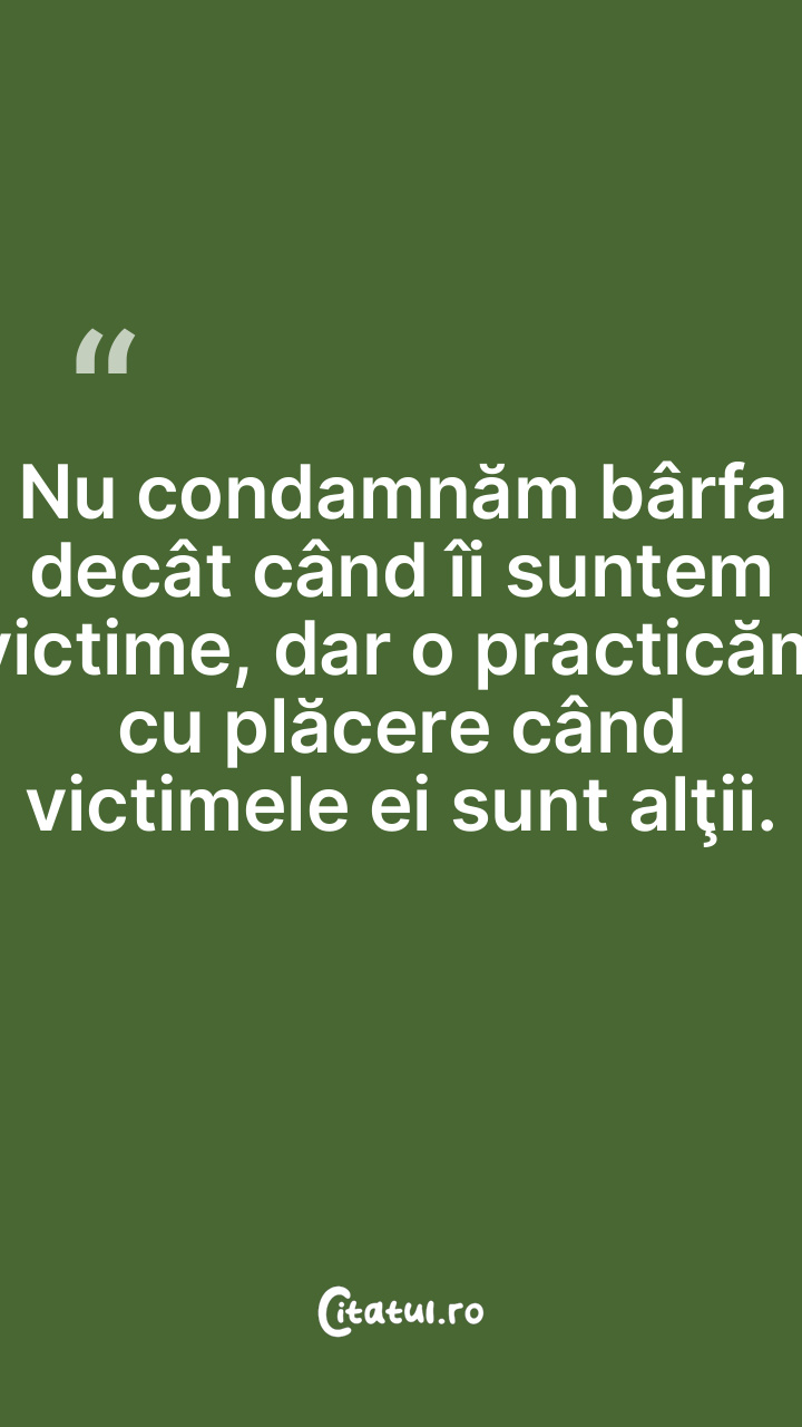 Nu condamnăm bârfa decât când îi suntem victime, dar o practicăm cu plăcere când victimele ei sunt alţii.