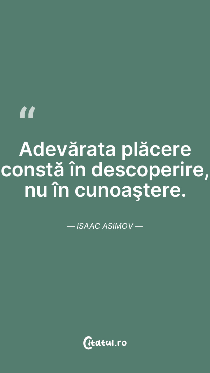 Adevărata plăcere constă în descoperire, nu în cunoaştere. Isaac Asimov
