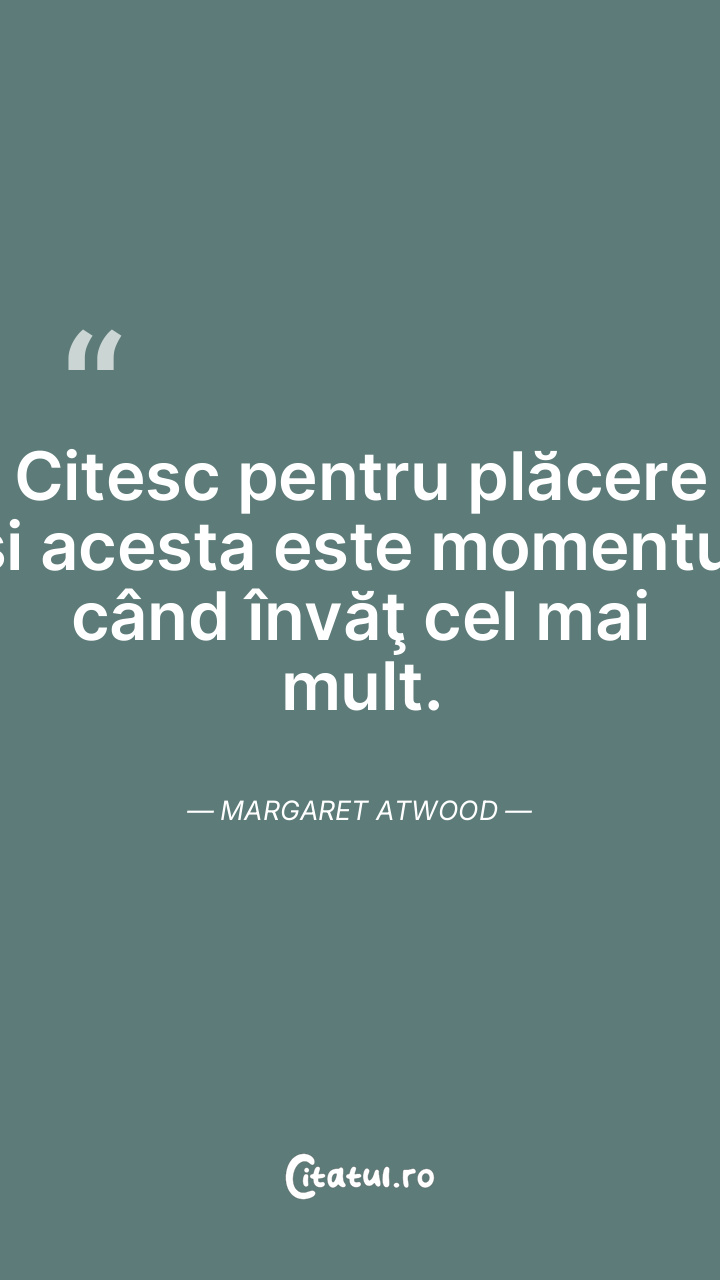 Citesc pentru plăcere şi acesta este momentul când învăţ cel mai mult. Margaret Atwood