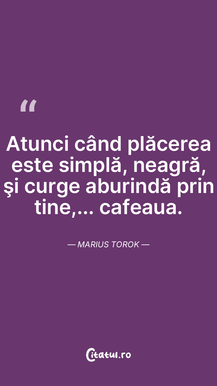 Atunci când plăcerea este simplă, neagră, şi curge aburindă prin tine,... cafeaua. Marius Torok