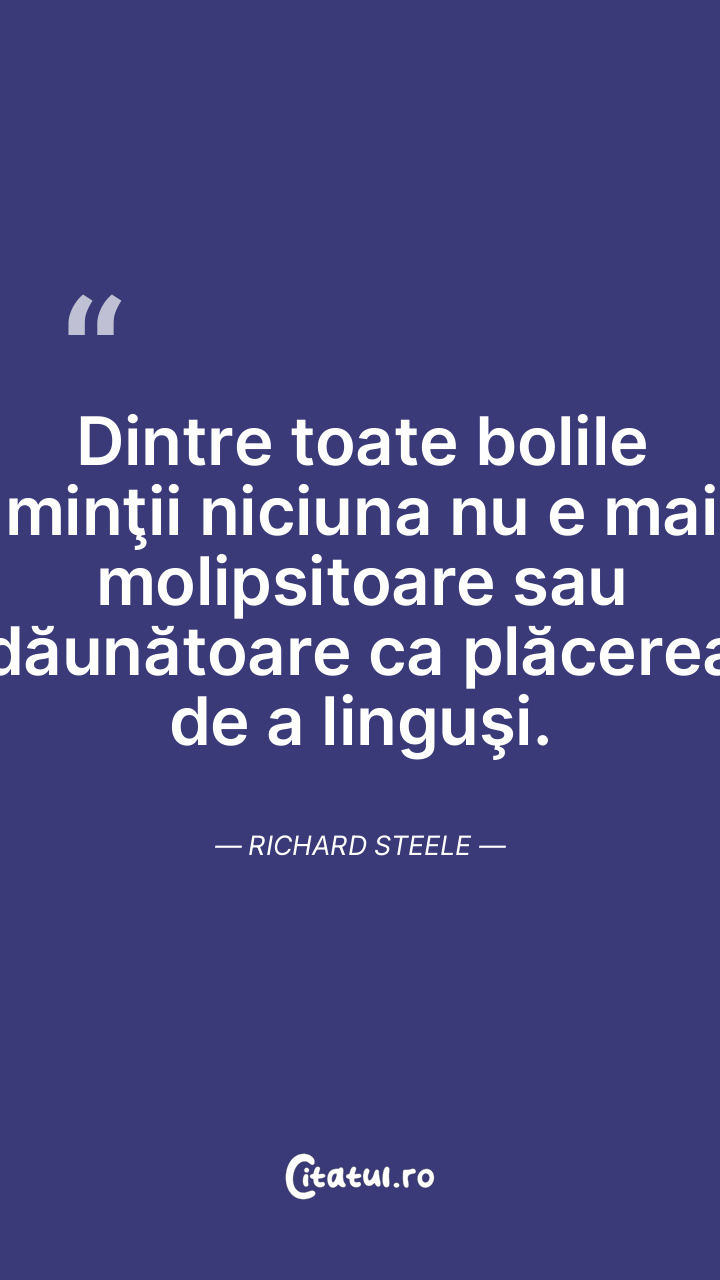 Dintre toate bolile minţii niciuna nu e mai molipsitoare sau dăunătoare ca plăcerea de a linguşi. Richard Steele