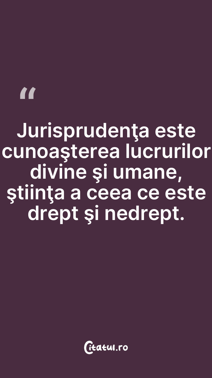 Jurisprudenţa este cunoaşterea lucrurilor divine şi umane, ştiinţa a ceea ce este drept şi nedrept.