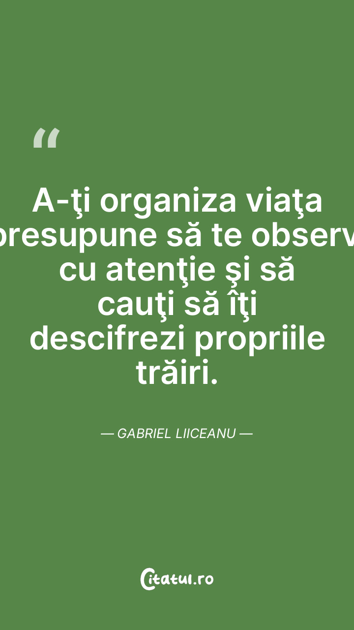 A-ţi organiza viaţa presupune să te observi cu atenţie şi să cauţi să îţi descifrezi propriile trăiri. Gabriel Liiceanu