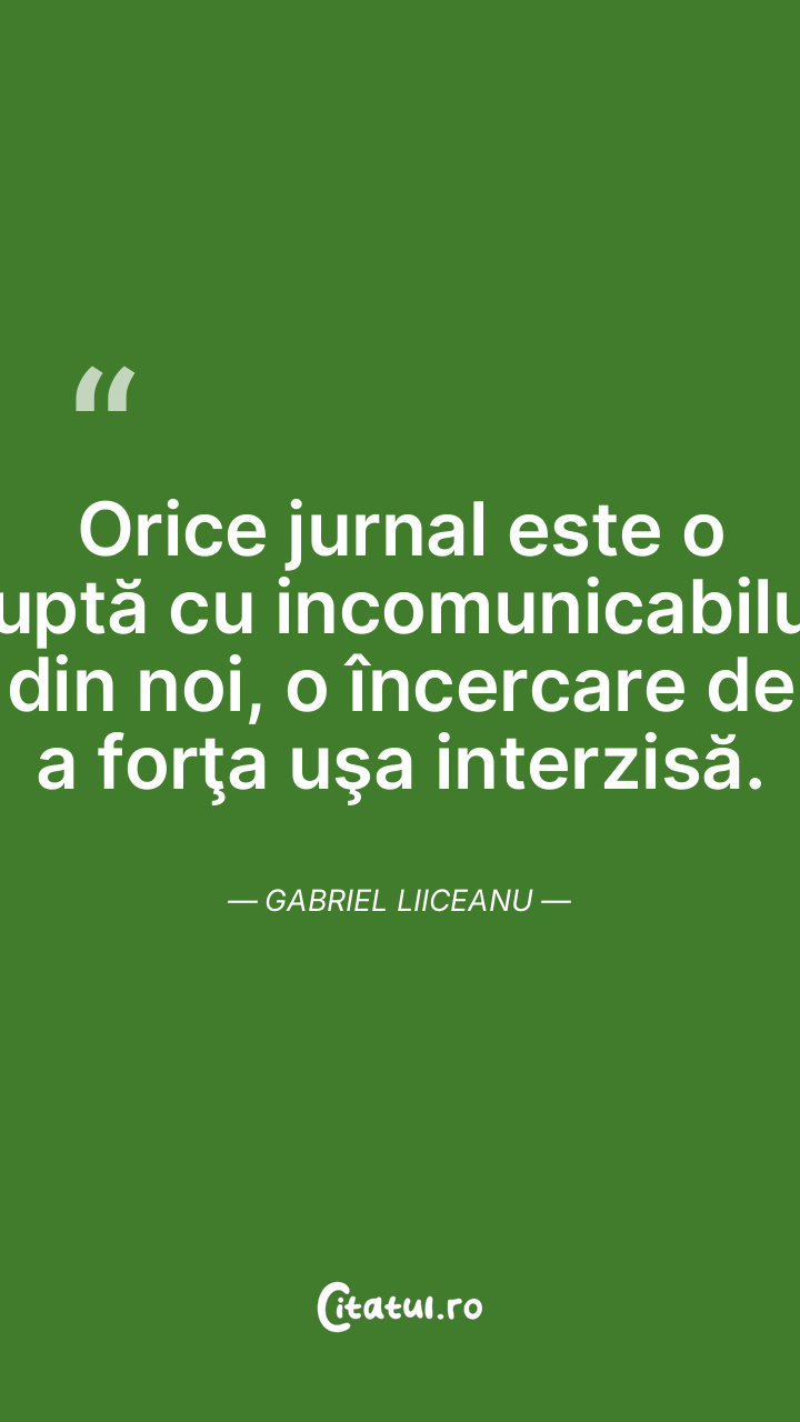 Orice jurnal este o luptă cu incomunicabilul din noi, o încercare de a forţa uşa interzisă. Gabriel Liiceanu