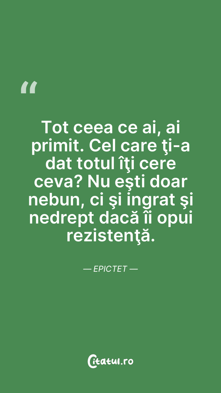 Tot ceea ce ai, ai primit. Cel care ţi-a dat totul îţi cere ceva? Nu eşti doar nebun, ci şi ingrat şi nedrept dacă îi opui rezistenţă. Epictet