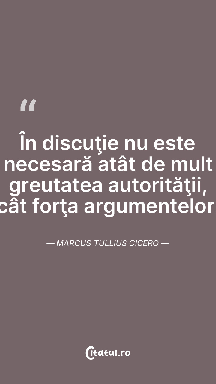 În discuţie nu este necesară atât de mult greutatea autorităţii, cât forţa argumentelor. Marcus Tullius Cicero