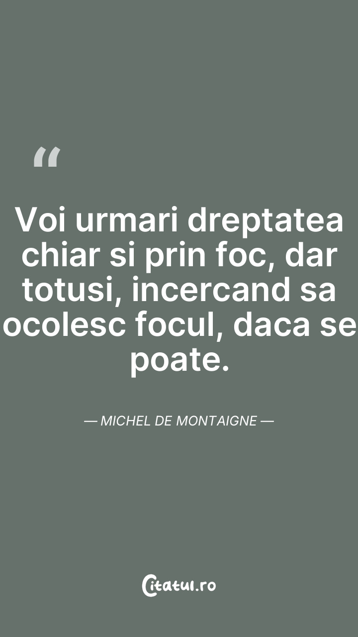 Voi urmari dreptatea chiar si prin foc, dar totusi, incercand sa ocolesc focul, daca se poate. Michel de Montaigne