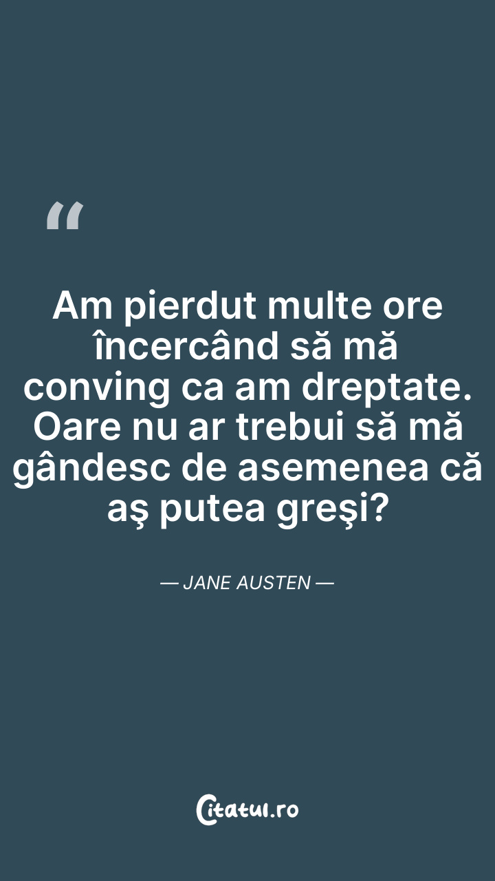 Am pierdut multe ore încercând să mă conving ca am dreptate. Oare nu ar trebui să mă gândesc de asemenea că aş putea greşi? Jane Austen