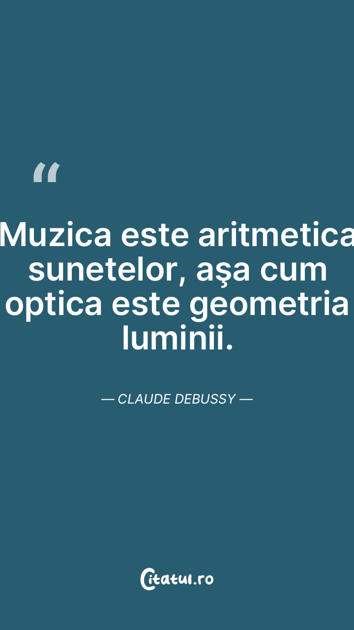 Muzica este aritmetica sunetelor, aşa cum optica este geometria luminii. Claude Debussy