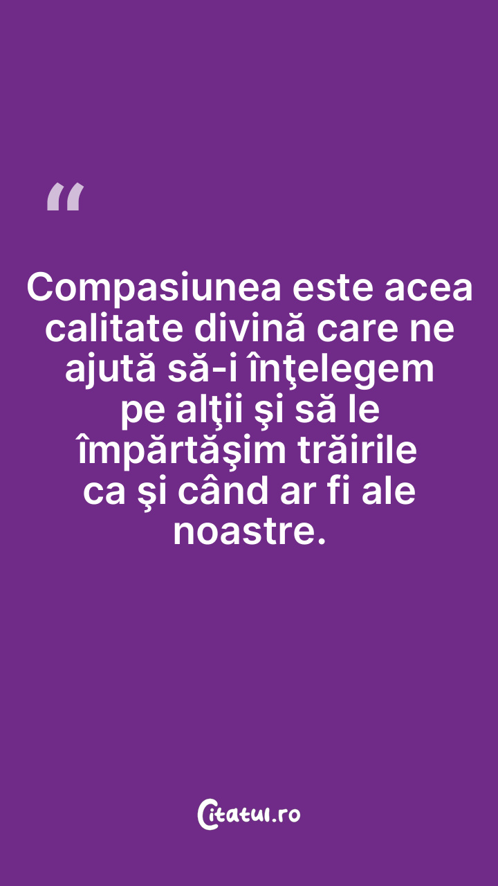 Compasiunea este acea calitate divină care ne ajută să-i înţelegem pe alţii şi să le împărtăşim trăirile ca şi când ar fi ale noastre.