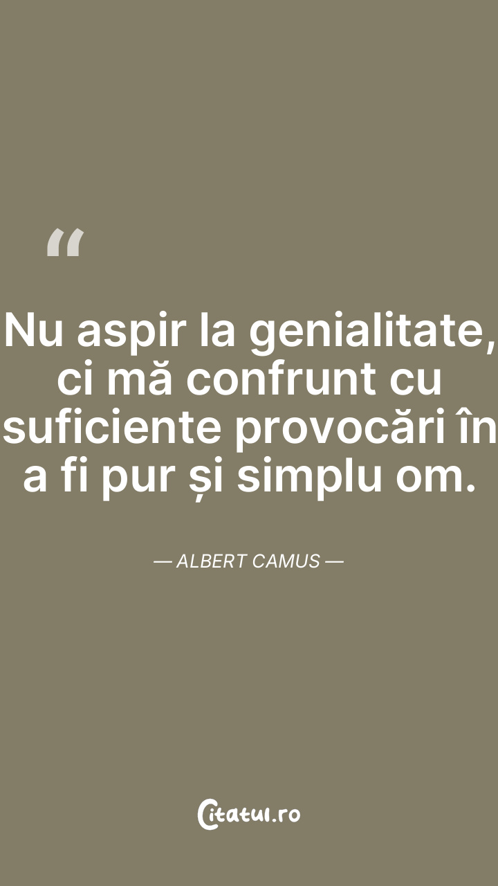 Nu aspir la genialitate, ci mă confrunt cu suficiente provocări în a fi pur și simplu om. Albert Camus
