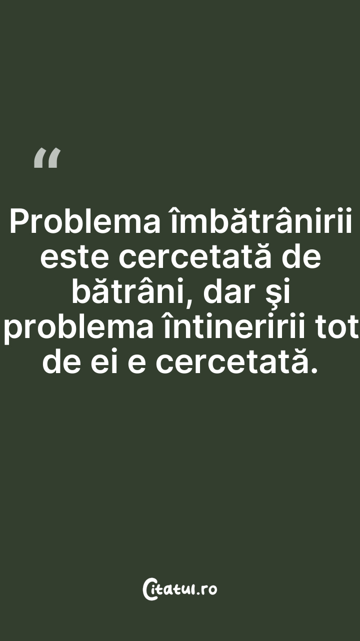 Problema îmbătrânirii este cercetată de bătrâni, dar şi problema întineririi tot de ei e cercetată.
