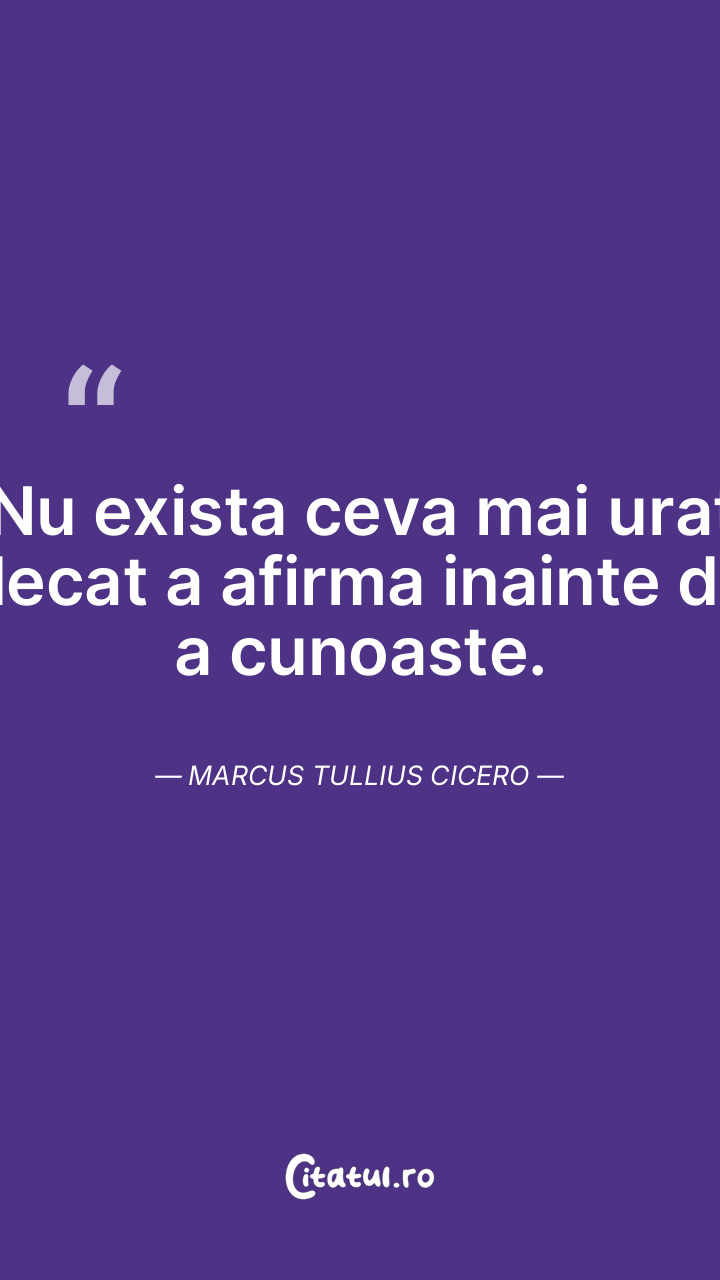 Nu exista ceva mai urat decat a afirma inainte de a cunoaste. Marcus Tullius Cicero