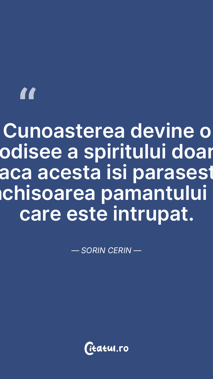 Cunoasterea devine o odisee a spiritului doar daca acesta isi paraseste inchisoarea pamantului in care este intrupat. Sorin Cerin