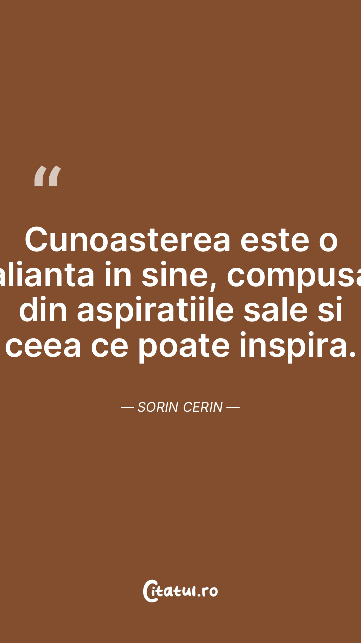 Cunoasterea este o alianta in sine, compusa din aspiratiile sale si ceea ce poate inspira. Sorin Cerin