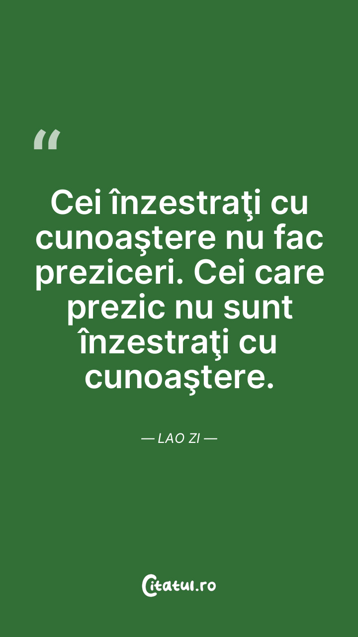 Cei înzestraţi cu cunoaştere nu fac preziceri. Cei care prezic nu sunt înzestraţi cu cunoaştere. Lao Zi