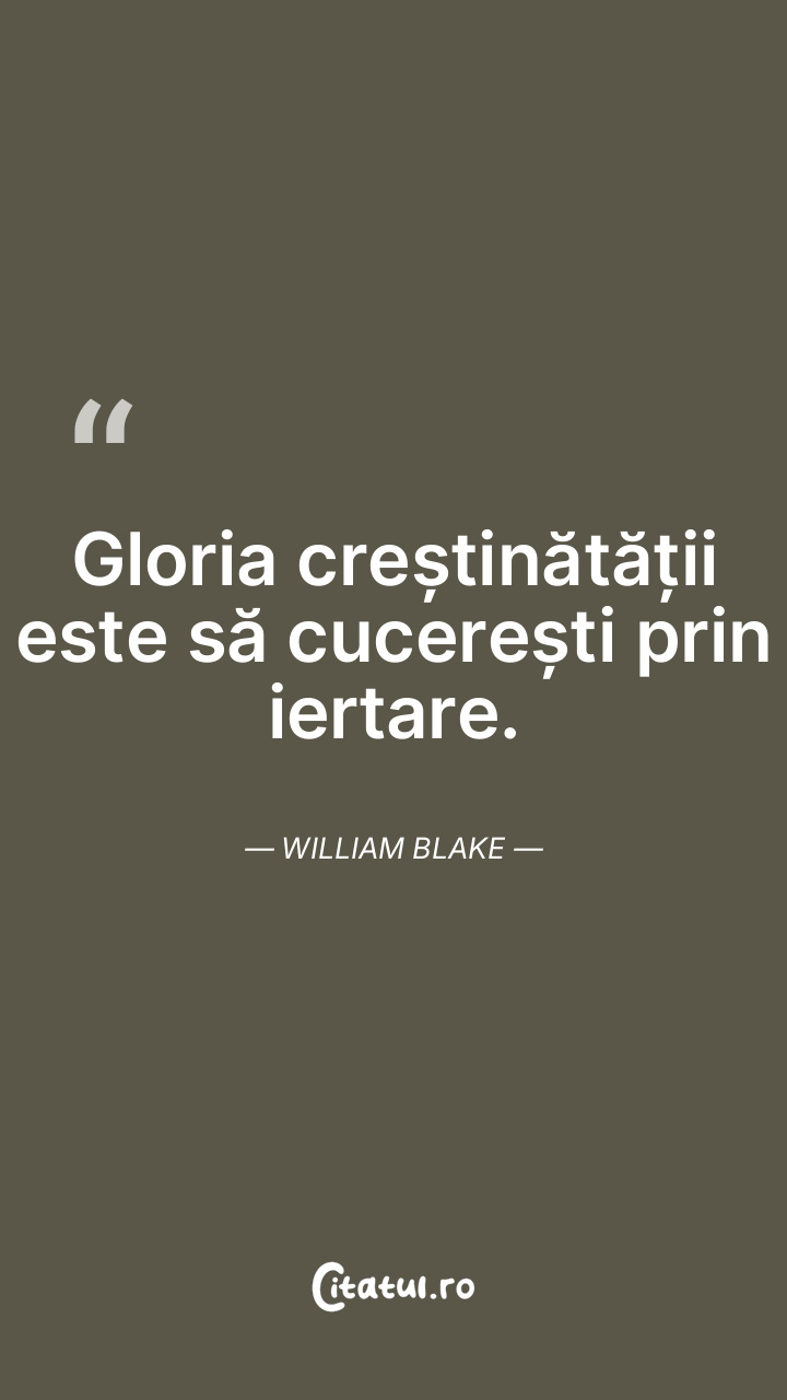 Gloria creștinătății este să cucerești prin iertare. William Blake
