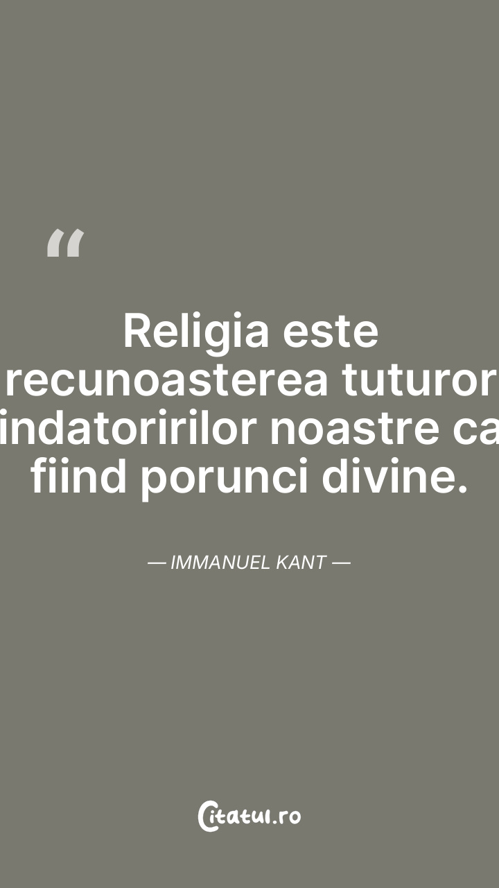 Religia este recunoasterea tuturor indatoririlor noastre ca fiind porunci divine. Immanuel Kant