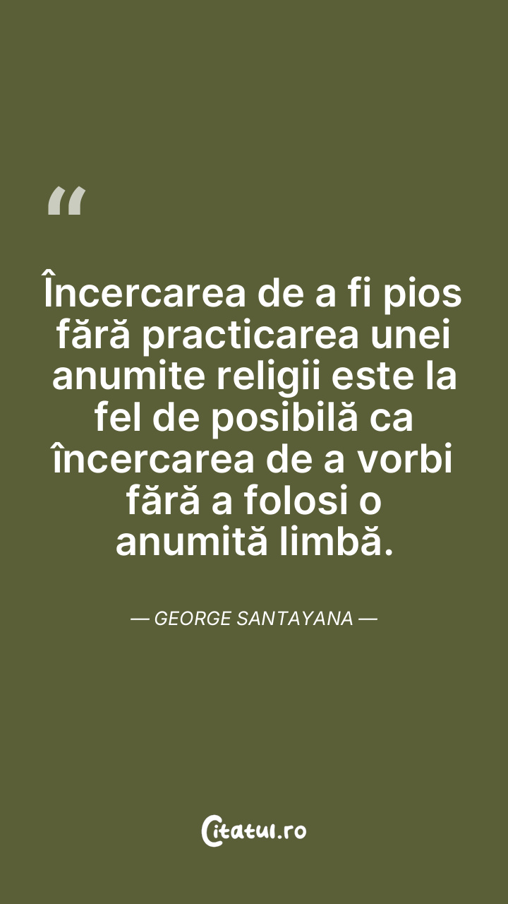 Încercarea de a fi pios fără practicarea unei anumite religii este la fel de posibilă ca încercarea de a vorbi fără a folosi o anumită limbă. George Santayana