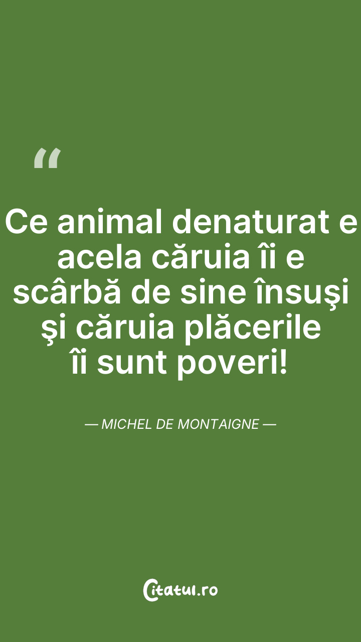 Ce animal denaturat e acela căruia îi e scârbă de sine însuşi şi căruia plăcerile îi sunt poveri! Michel de Montaigne