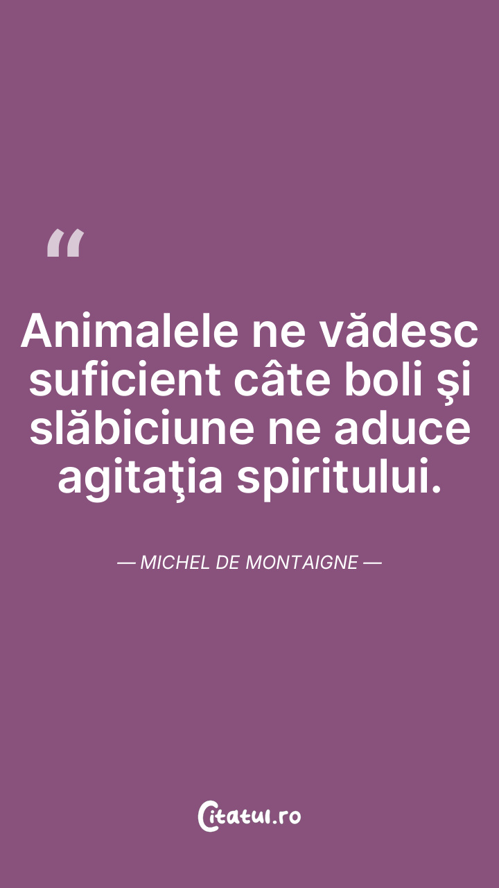 Animalele ne vădesc suficient câte boli şi slăbiciune ne aduce agitaţia spiritului. Michel de Montaigne