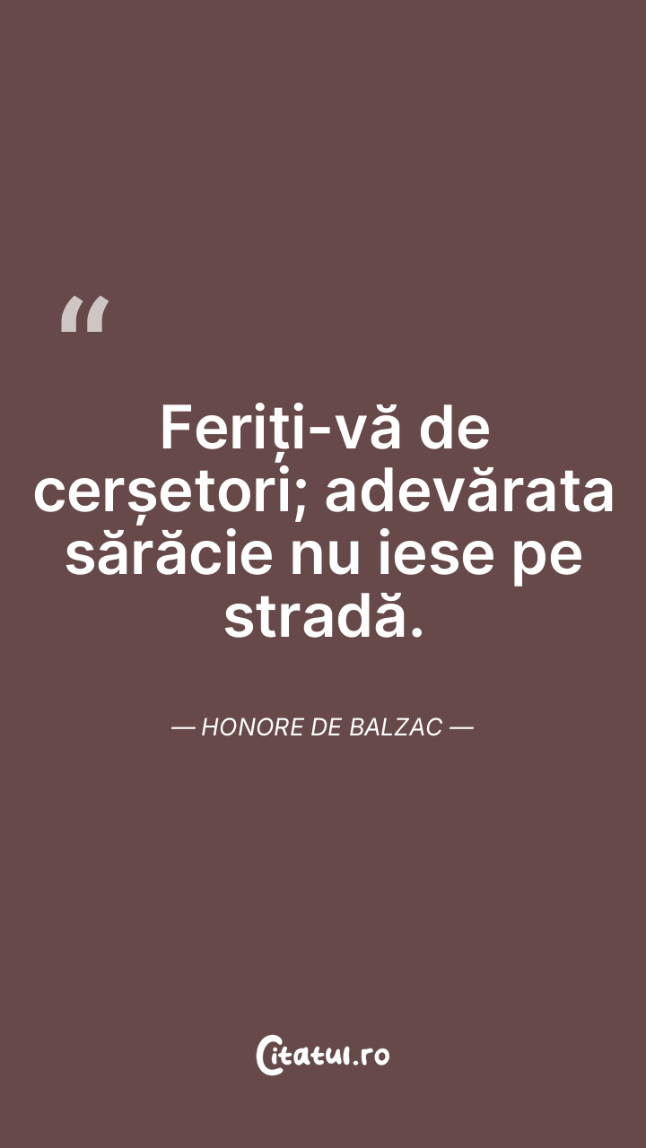 Feriți-vă de cerșetori; adevărata sărăcie nu iese pe stradă. Honore de Balzac