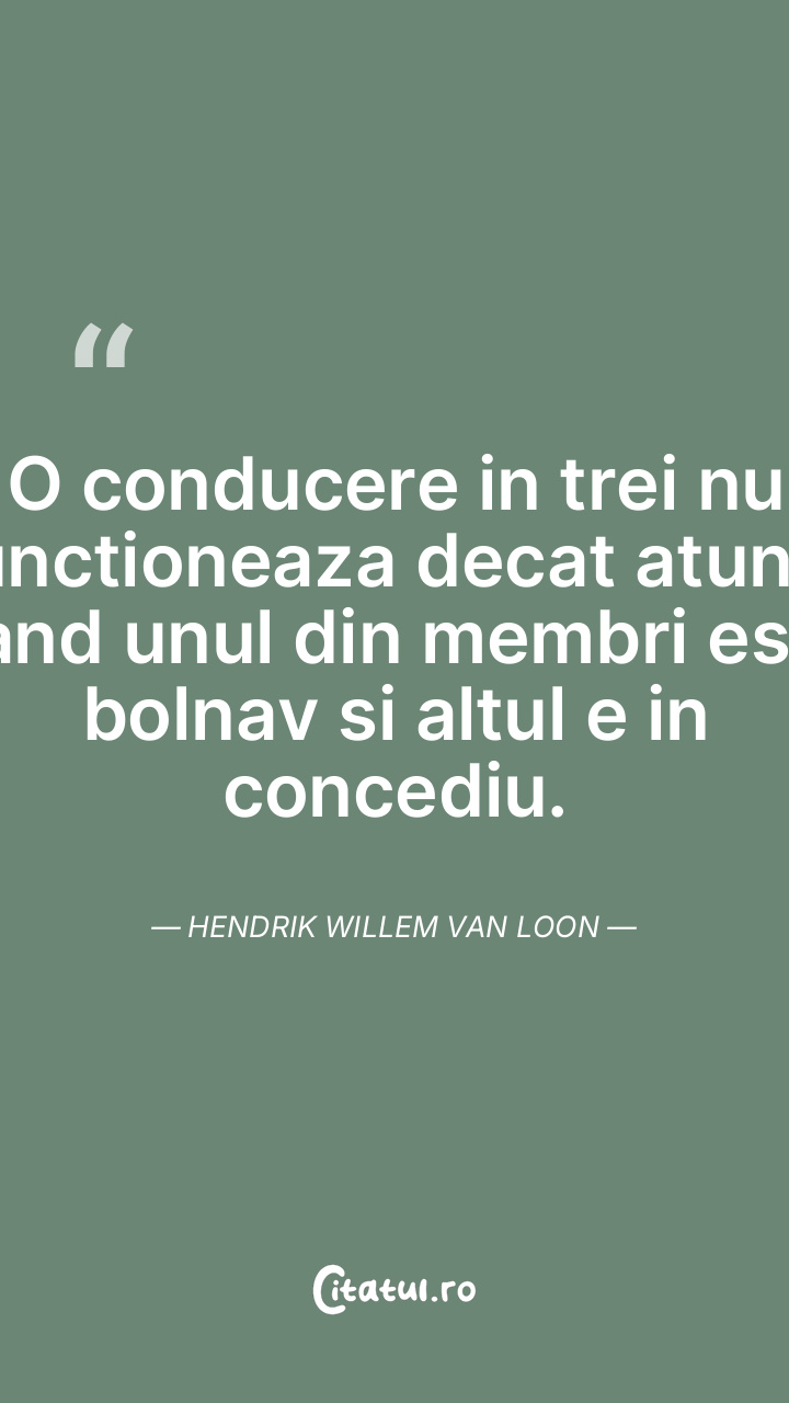 O conducere in trei nu functioneaza decat atunci cand unul din membri este bolnav si altul e in concediu. Hendrik Willem van Loon