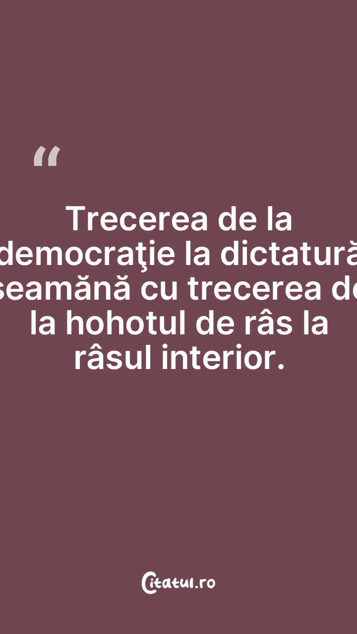 Trecerea de la democraţie la dictatură seamănă cu trecerea de la hohotul de râs la râsul interior.