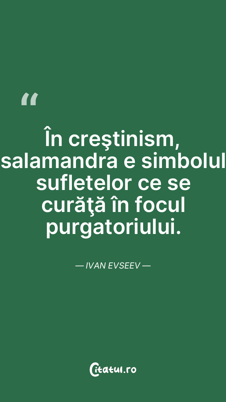 În creştinism, salamandra e simbolul sufletelor ce se curăţă în focul purgatoriului. Ivan Evseev