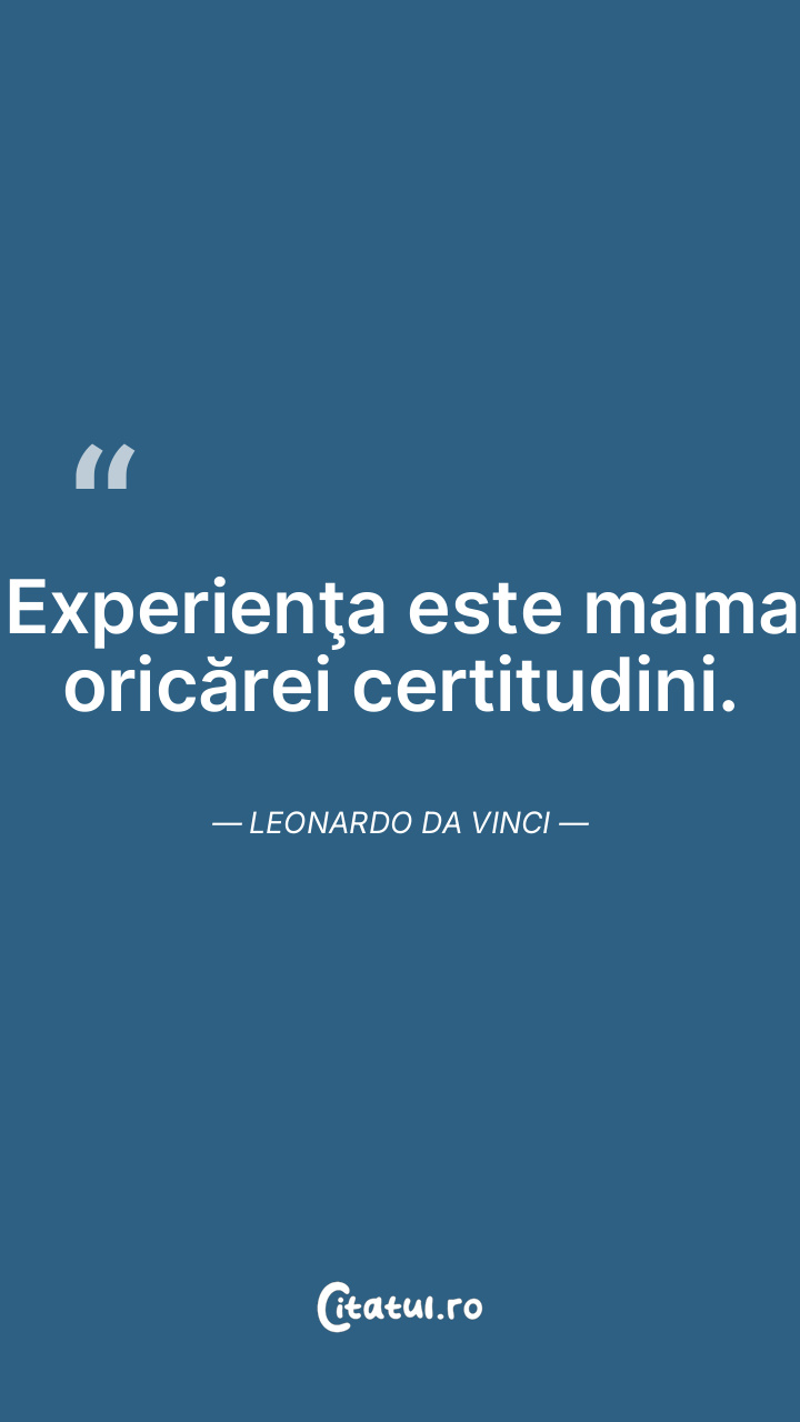 Experienţa este mama oricărei certitudini. Leonardo da Vinci