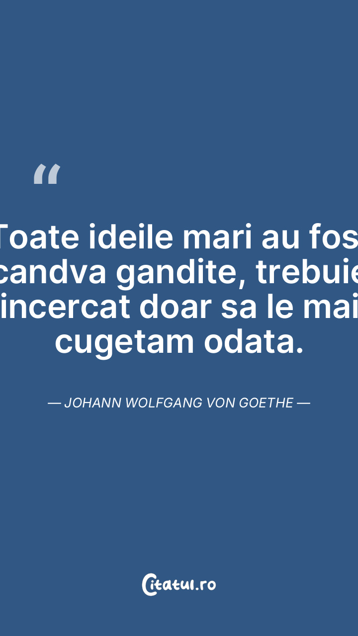 Toate ideile mari au fost candva gandite, trebuie incercat doar sa le mai cugetam odata. Johann Wolfgang von Goethe