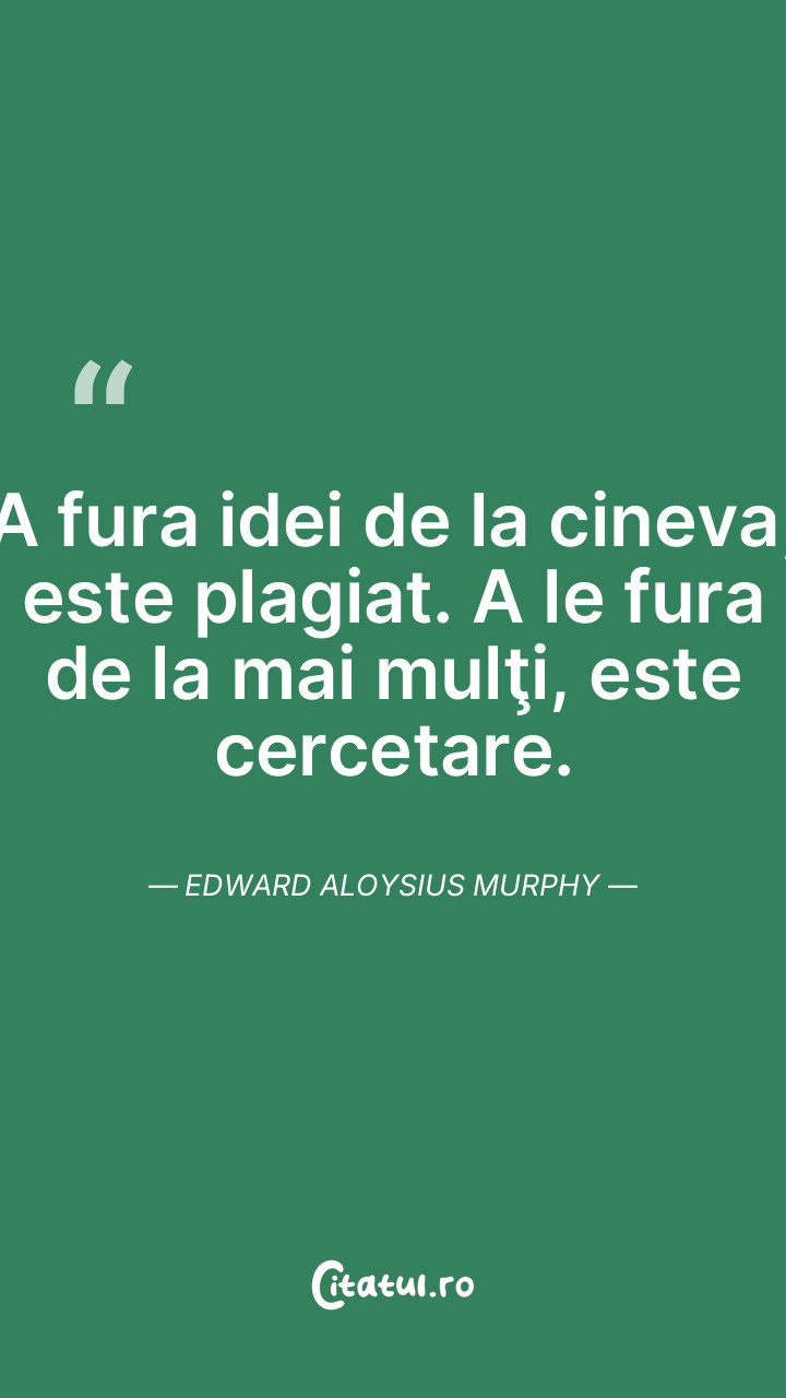 A fura idei de la cineva, este plagiat. A le fura de la mai mulţi, este cercetare. Edward Aloysius Murphy