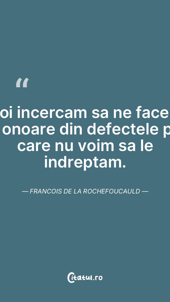 Noi incercam sa ne facem o onoare din defectele pe care nu voim sa le indreptam. Francois de la Rochefoucauld
